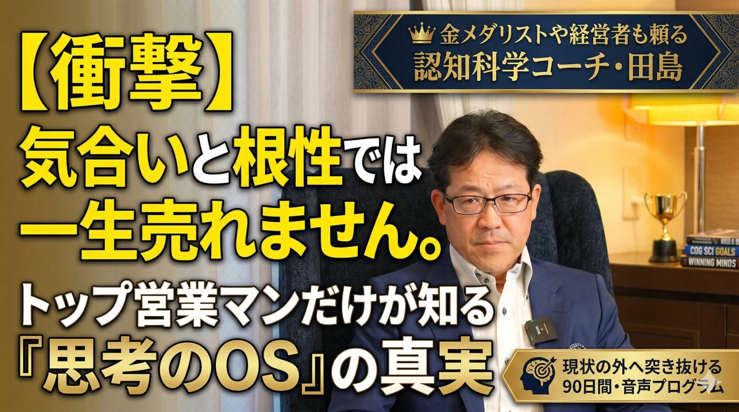 あなたの「古いOS」のまま、気合いと根性で毎月の数字に追われる日々を、この先何年も続けますか?それとも、今日ここで決断し、お客様の可能性を広げながら感謝されて売れ続ける「真のプロフェッショナル」へと進化しますか?